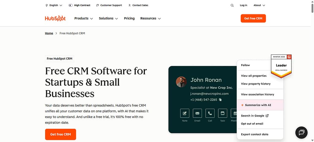 The best eCommerce CRM software for small businesses is the one that centralizes customer data, orders, and communication while remaining easy to set up and scale. In 2026, popular eCommerce CRM solutions for small teams include tools like HubSpot CRM and Zoho CRM, which combine automation, segmentation, and ecommerce integrations without enterprise complexity.