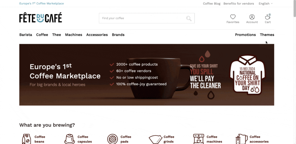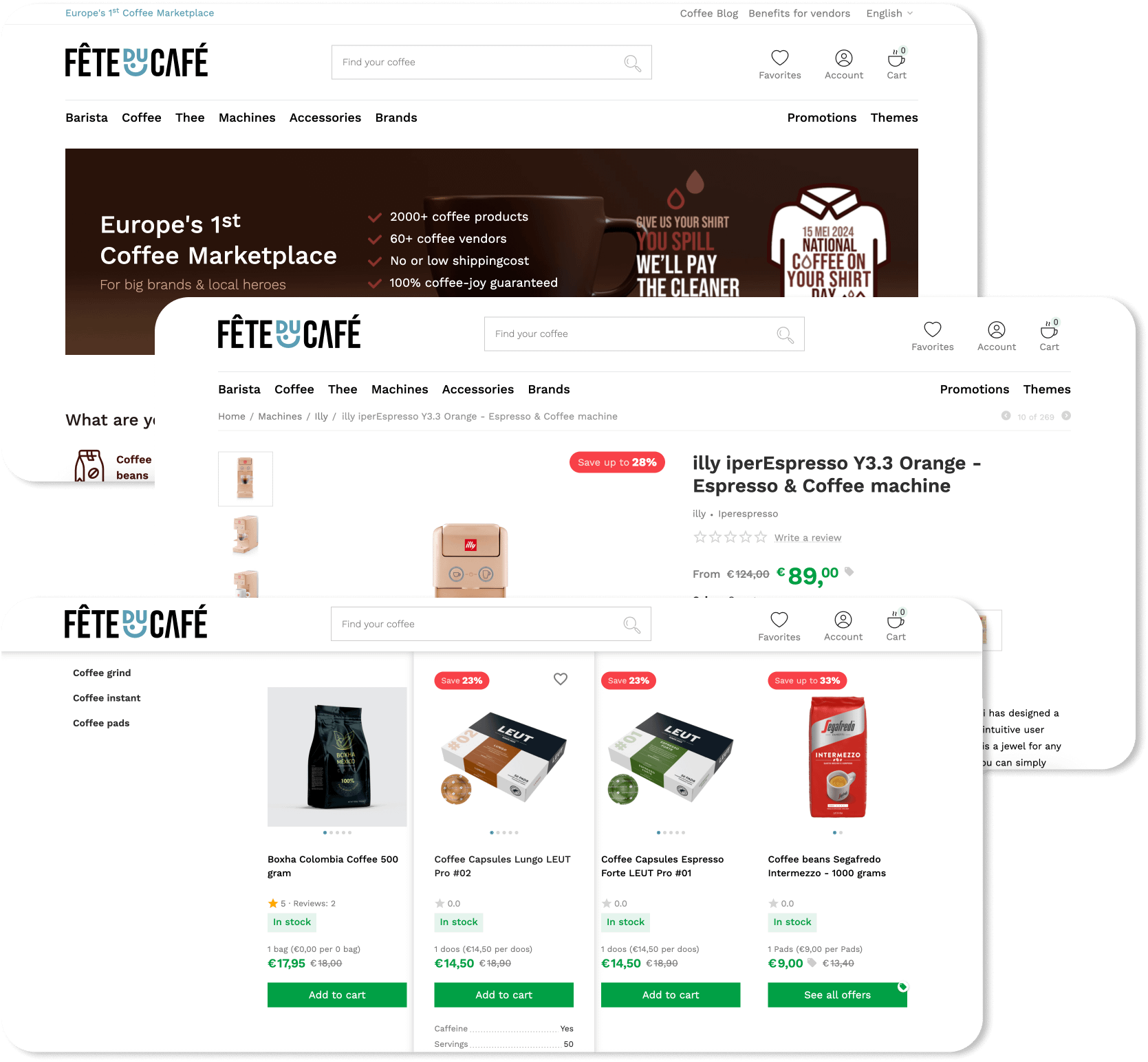 Fête du Café is a unique marketplace focused on coffee and tea. The idea for this platform came from its founder, Jeroen van der Geest, who noticed the huge coffee market in the Netherlands, valued at about 5 billion euros.