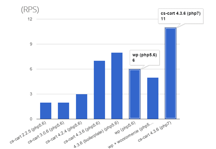 - If the number of HTTP requests exceeds the number a store can handle per second, it slows down and crashes. CS-Cart 4.3.6 on PHP 7 handles 2 times more HTTP-requests per second than WordPress: