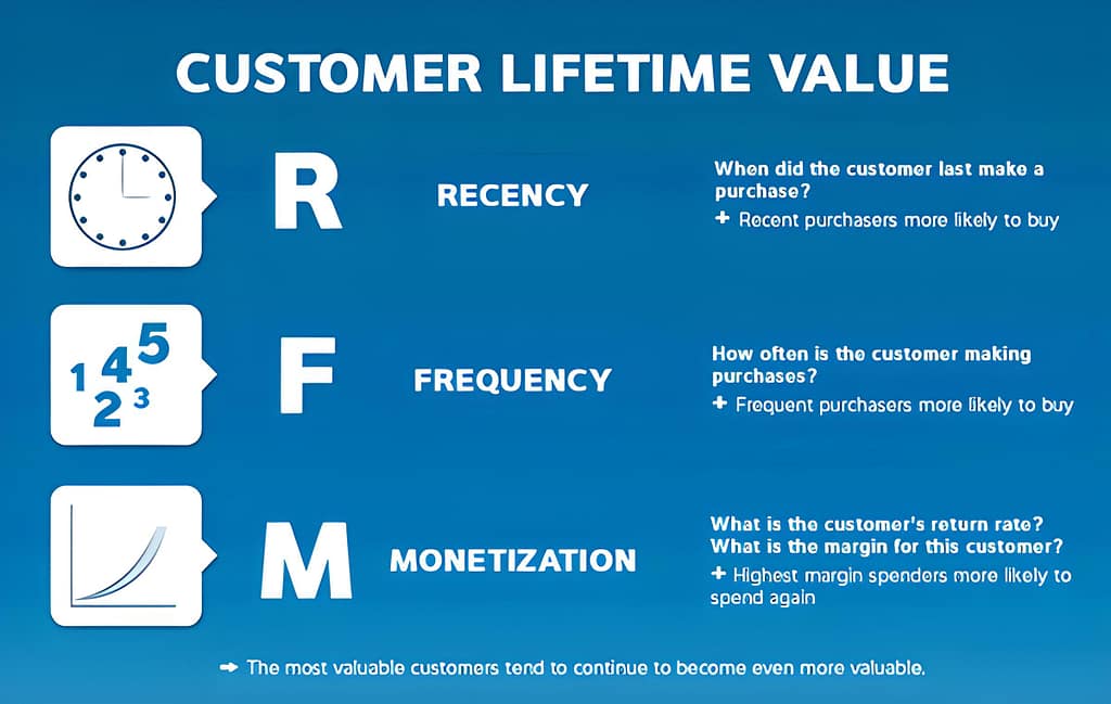It is immensely important to determine your customers’ lifetime value or CLV for short. Understanding your CLV allows you to see the total amount of money that a particular customer is likely to spend over his or her lifetime. This metric gives you a baseline to measure advertising performance, helps determine business worth, it can act as a benchmark for future growth and expansion and etc.