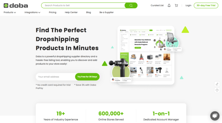 The B2B wholesale online marketplace platform Doba builds its service with focus on dropshippers as customers:
