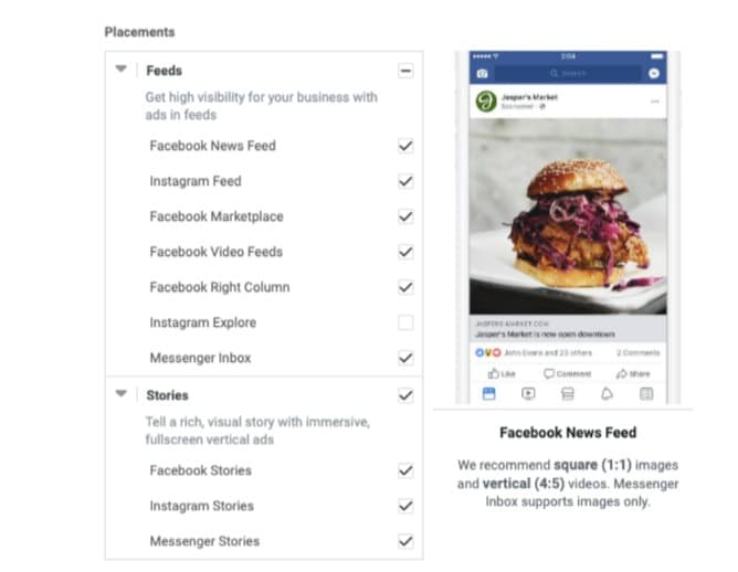 Manual Placements: This feature enables businesses to improve the placement of their ads. For instance, they can select relevant video feeds, stories, marketplace, Facebook right column, and more. This can help increase reach and recurring revenue, thereby improving LTV.
