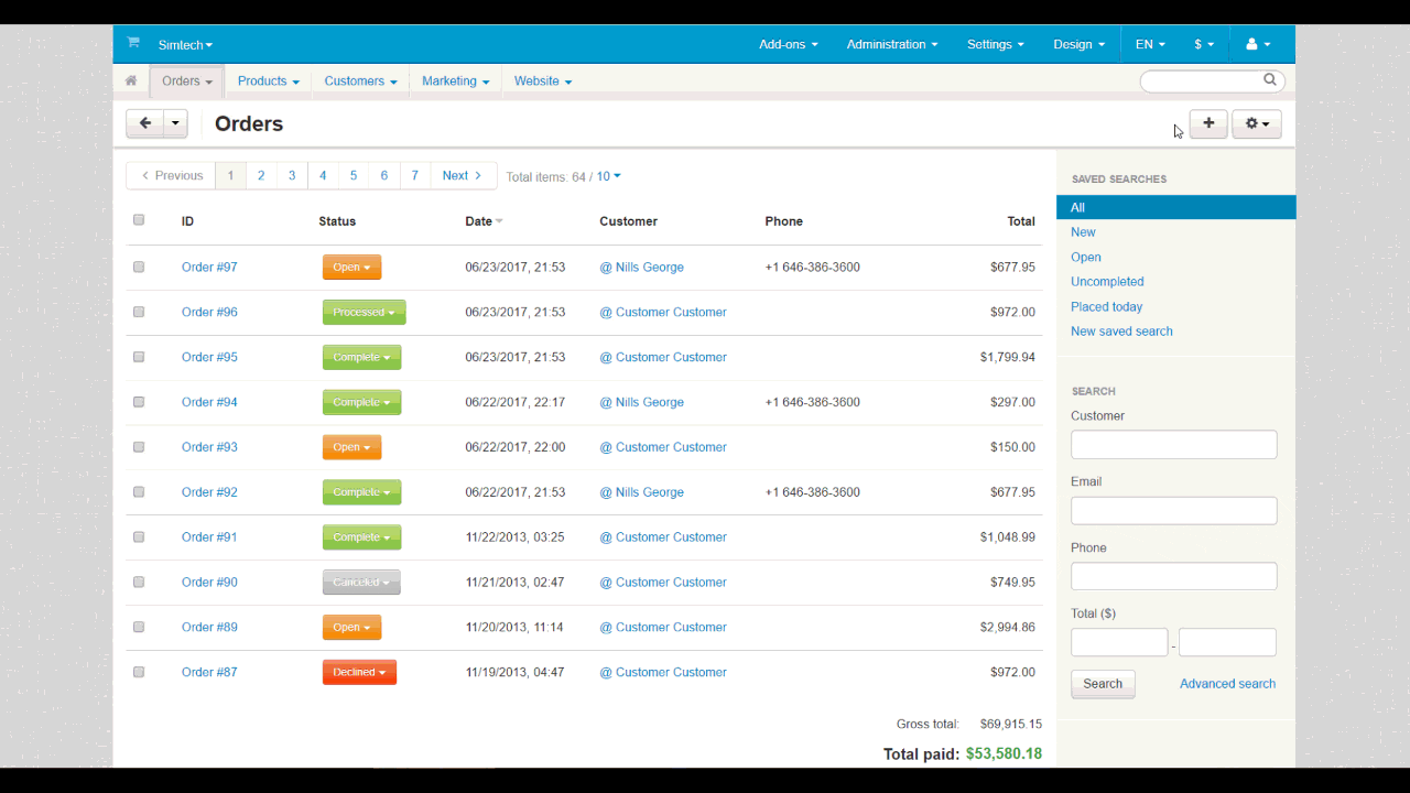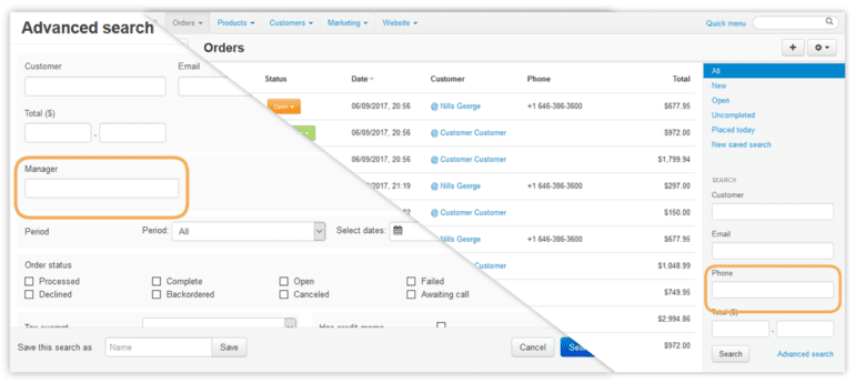 2. The Phone field to search for orders. To find an order, admins use order search in Orders → View orders. We’ve added the ability to search for orders by a customer’s phone number.