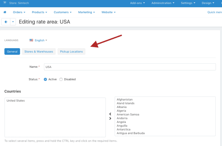 - Admins now see what stores and pickup points are available for customers in rate areas. We’ve added a new tab to a rate area editing page—Pickup Locations. On this tab, admins can see the list of stores and pickup points that are available for customers in a certain rate area.