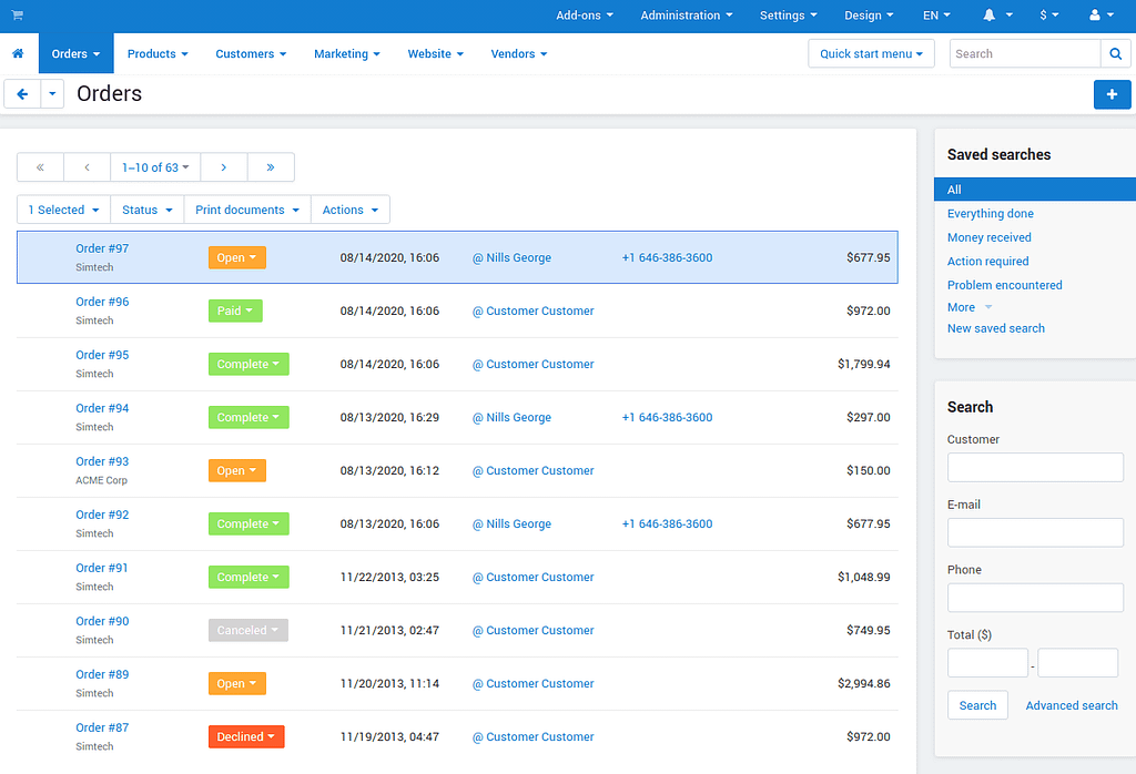 • Interface for bulk operations with vendors (in Multi-Vendor), orders, categories, and countries has been improved. Now it looks like working with products: