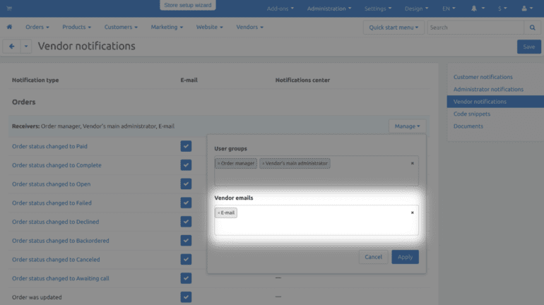A vendor can be an individual or a company. Companies might have multiple administrators working in the vendor panel of your marketplace. Previously, by default, order notifications were sent to the main vendor administrator. This could be inconvenient when the vendor’s main administrator wasn’t the one handling orders.