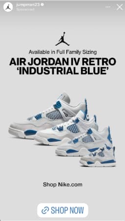 Notice how Jordan includes a shoppable link in an Instagram Stories ad. When a potential customer clicks the link, they’ll end up on the Jordan site. But they do so all without leaving the Instagram app.