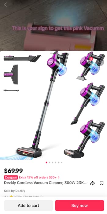 Firstly, M-commerce is a type of E-commerce. But not all E-commerce is M-commerce. For example, a consumer uses their smartphone to purchase a cordless stick vacuum on the TikTok shop, without having to leave the TikTok app.