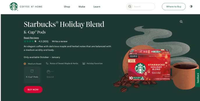 So, the customer doesn’t use these mobile apps to make the purchase. Instead, the customer goes straight to the Starbucks Coffee at Home site to buy what they need.