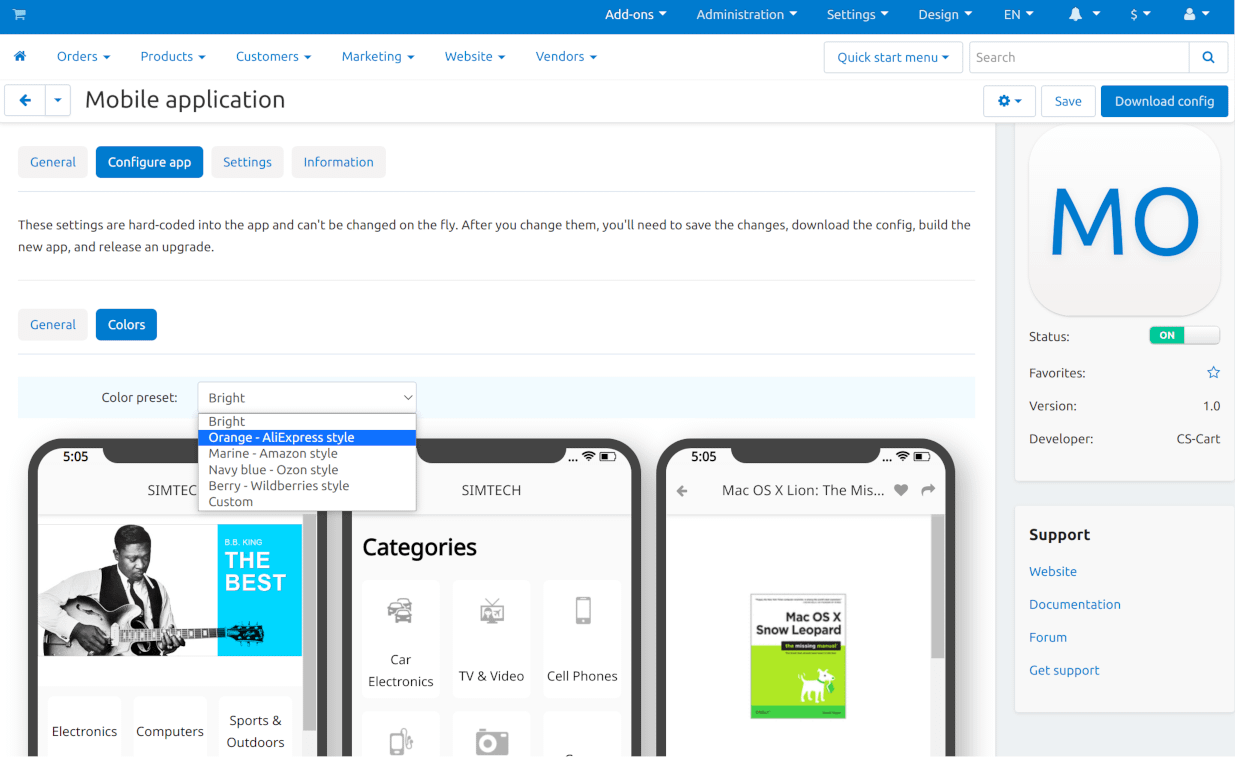 Configuring the CS-Cart mobile app in the store’s admin panel