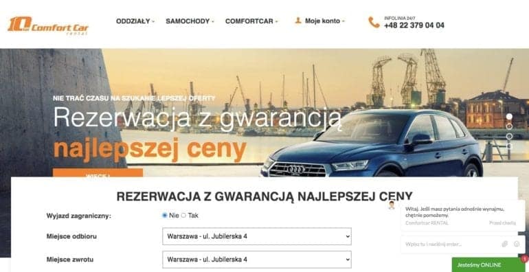 Comfort Car is a car booking service marketplace in Poland. They have worked in this industry for 10 years and rent out over 150,000 cars. In 2009 they started with 5 cars and now their car fleet counts more than 500 vehicles. They have departments in all the big cities of Poland: Warsaw, Krakov, Katowice, Poznan, Gdansk, and others.