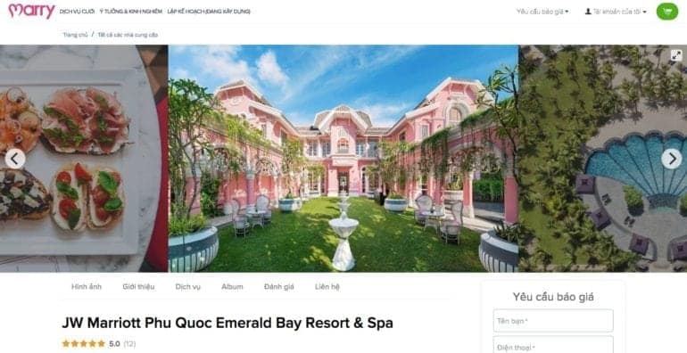 Marry.vn is a service marketplace in Vietnam. They offer wedding services: ideas, organization, planning, and everything. This is the largest website in Vietnam for wedding planning. Here, you can order wedding promotion, plan, find some cool wedding ideas, choose a restaurant, manage your guests, hire a professional for wedding preparations and related jobs, and whatnot. Over 8,000 wedding services providers are at your disposal here.