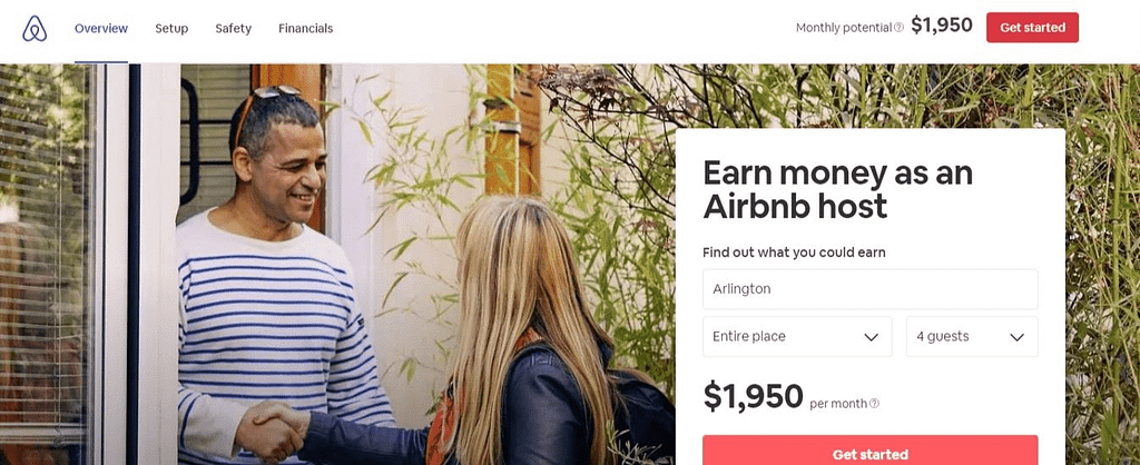 Look for ways to make the landing page experience more interactive as Airbnb does by including a specific dollar amount to demonstrate how much hosts can earn by renting their property: